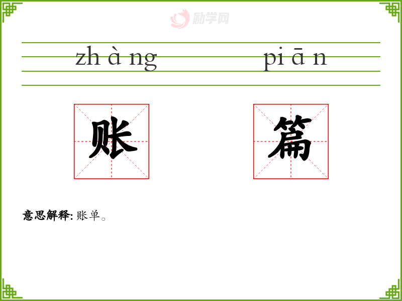 (古作“帐”。形声。从贝,长声。从贝,表明与财富有关。本义:账目,关于银钱财物出入的记载)。