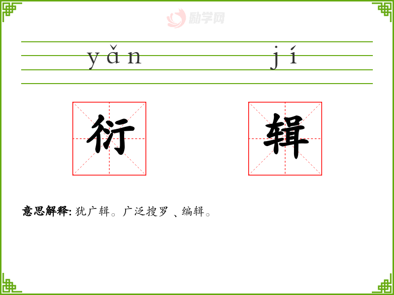 衍辑的意思是:犹广辑。广泛搜罗﹑编辑。