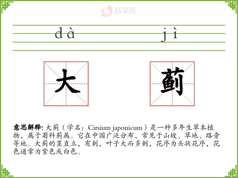 大蓟作为一种植物,不仅在自然界中扮演着重要角色,也在人类文化和医学中占有一席之地。通过对大蓟的学*,我更加理解了自然与人类生活的紧密联系,以及植物在不同文化中的多样性意义。