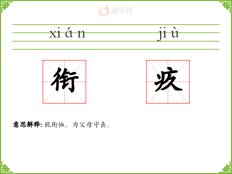 衔疚的意思是:犹衔恤。为父母守丧。