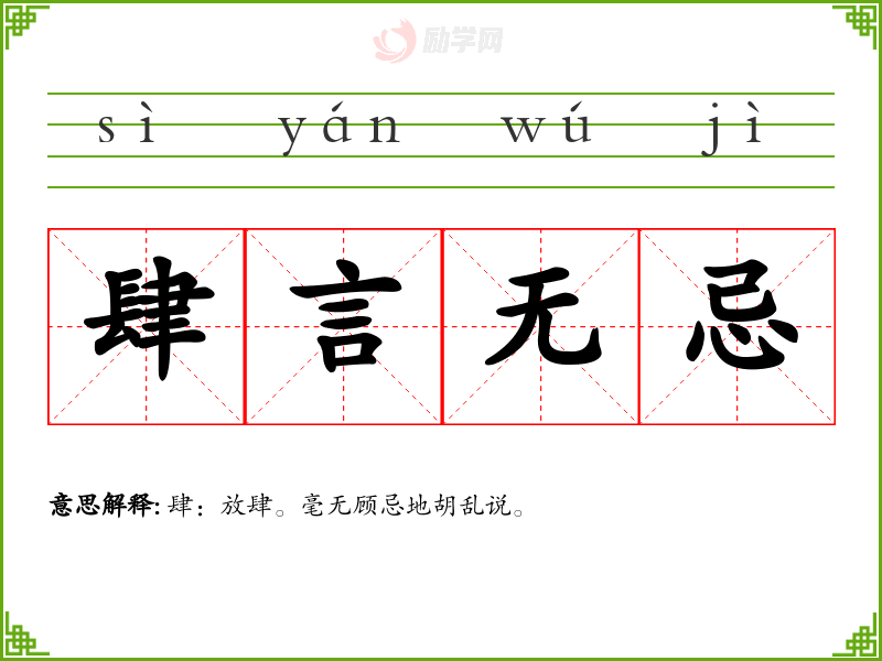 《说文》。朱骏声曰:“此字本训长。”-肆,极陈也。 《广韵》-肆,陈也。 《诗·小雅·楚茨》-或剥或享,或肆或将。 《诗·大雅·行苇》-肆筵设席,授几有缉御。