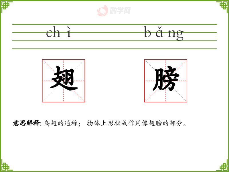 翅膀的意思是:鸟翅的通称; 物体上形状或作用像翅膀的部分。