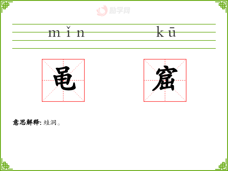 《说文》。字亦作窟。-窟,兔崛也。 《小尔雅·广兽》-兔之所息谓之窟。 《通俗文》。按,凡穴土皆曰堀。-兽穴曰窟。 《汉书·扬雄传》-西厌月窟。 《礼记·礼运》-昔者先王未有官室,冬则居营窟。