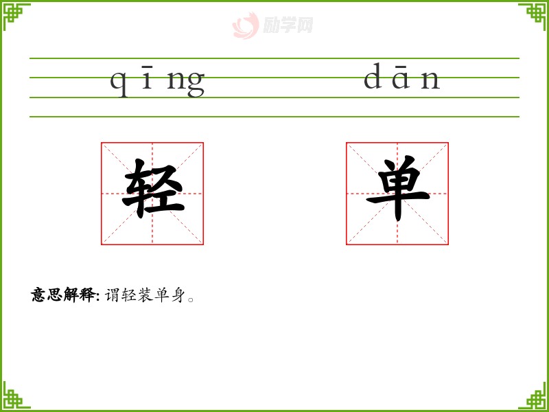 轻单的意思是:谓轻装单身。