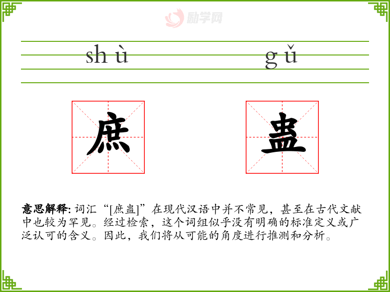 综上所述,词汇“[庶蛊]”在现代汉语中并不存在,因此无法进行深入的学和分析。在语言学中,我们应该关注那些有明确定义和广泛使用的词汇。