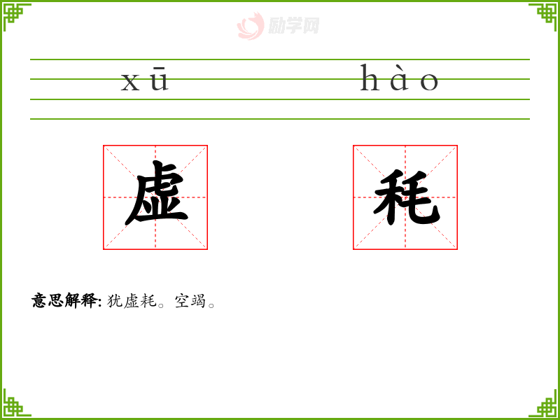 1.犹虚耗。空竭。
