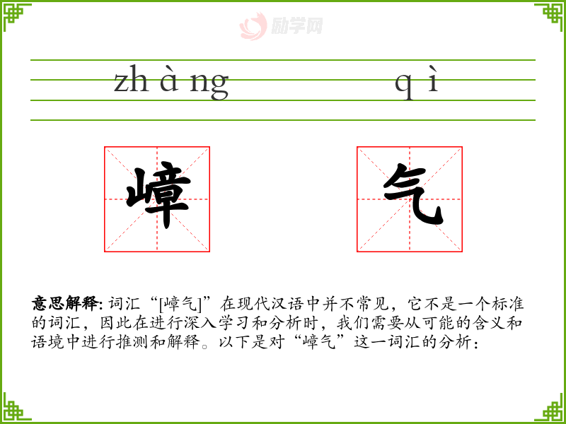 词汇“[嶂气]”在现代汉语中并不常见,它不是一个标准的词汇,因此在进行深入学*和分析时,我们需要从可能的含义和语境中进行推测和解释。以下是对“嶂气”这一词汇的分析: