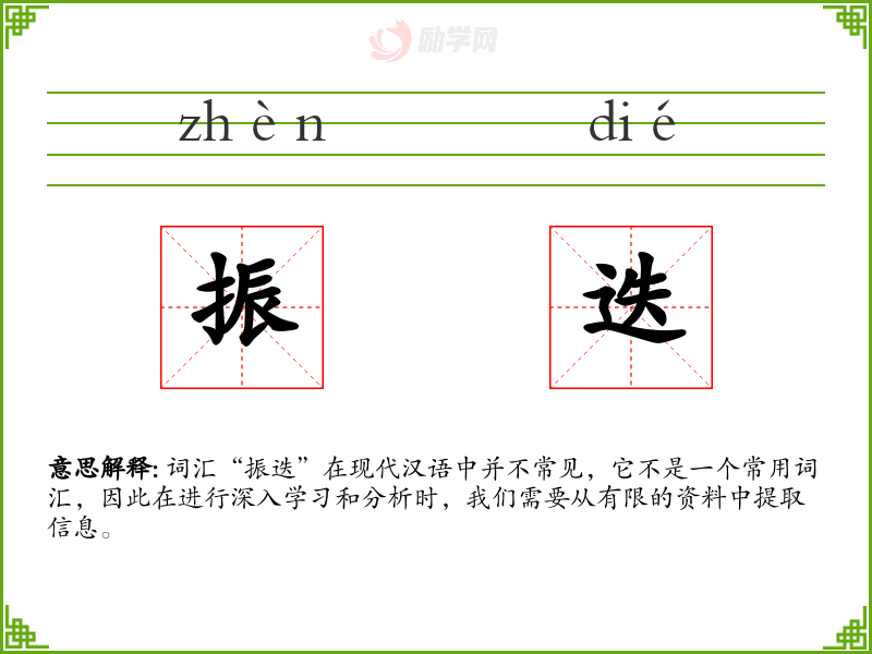 词汇“振迭”在现代汉语中并不常见,它不是一个常用词汇,因此在进行深入学习和分析时,我们需要从有限的资料中提取信息。