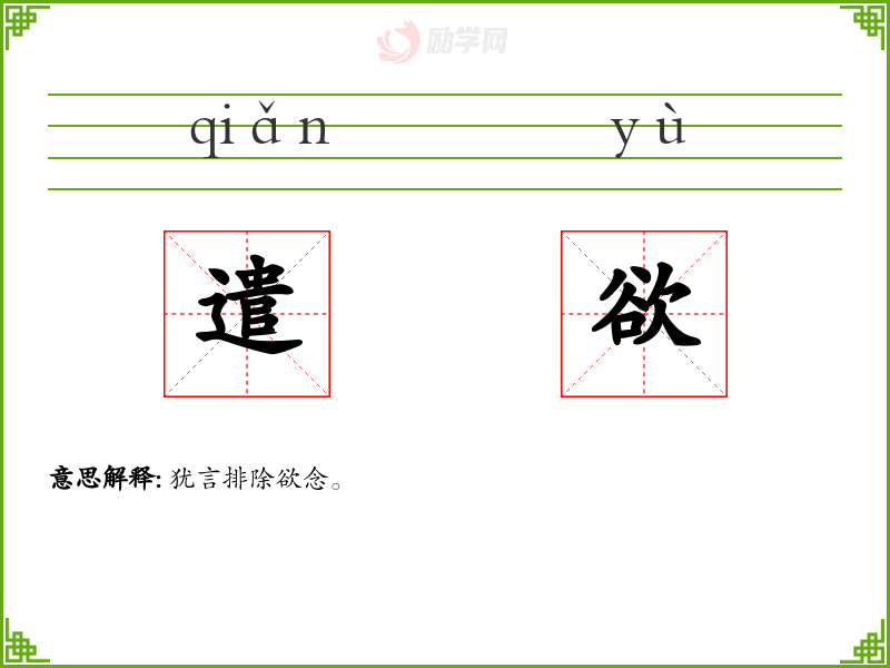 (形声。从欠,谷(yù)声。“欠”表示有所不足,故产生欲望。本义:欲望;嗜欲) 同本义。