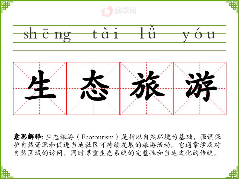 1.生态旅游的拼音是什么?生态旅游怎么读?