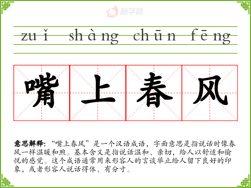 1.嘴上春风的拼音是什么?嘴上春风怎么读?