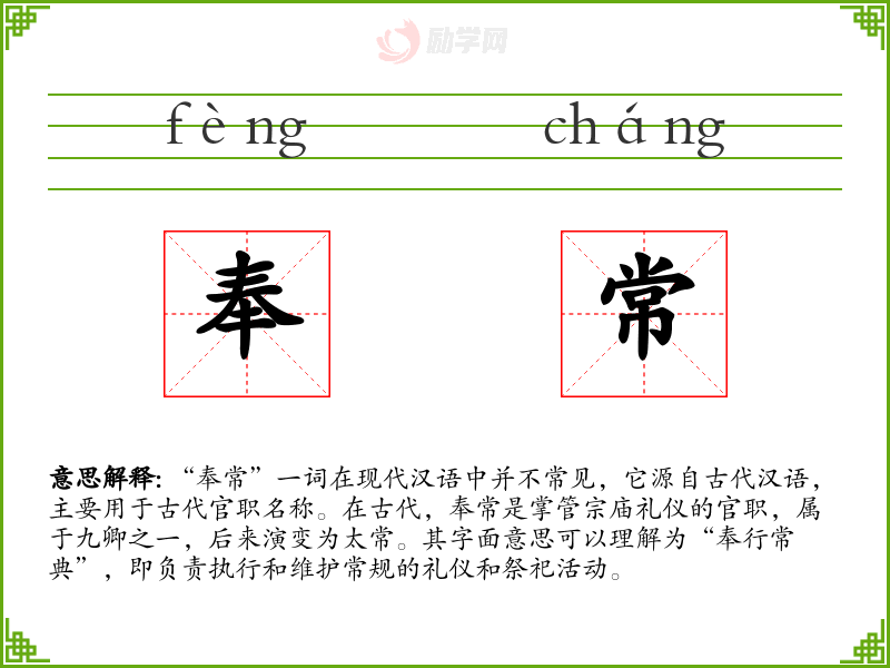 “奉常”一词虽然在现代汉语中不常用,但了解其含义和历史背景有助于更全面地理解*古代的官制和礼仪文化。在学古代历史和文化时,这个词汇是一个重要的知识点。
