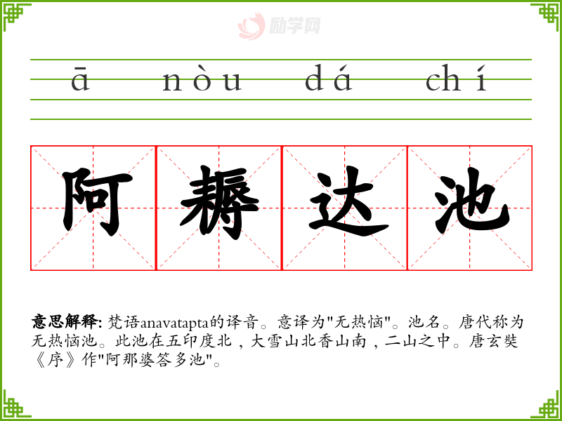 1.阿耨达池的拼音是什么?阿耨达池怎么读?