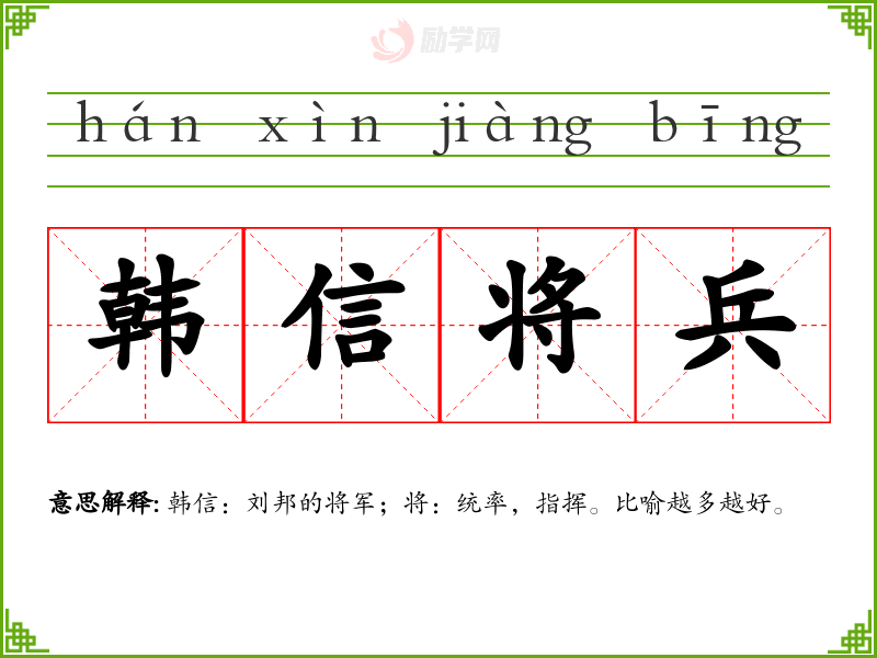 韩信:刘邦的将军;将:统率,指挥。比喻越多越好。