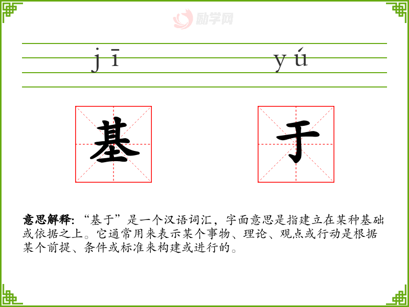 “基于”的词源较为直接,由“基”和“于”两个字组成。“基”指基础或根基,“于”表示在...之上。在古代汉语中,“基于”可能不常用,但随着现代汉语的发展,它成为了表达基础和依据的常用词汇。