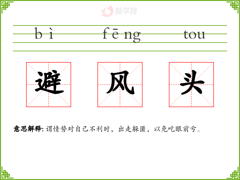 避风头的意思是:谓情势对自己不利时,出走躲匿,以免吃眼前亏。