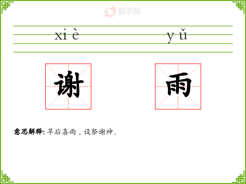 谢雨的意思是:旱后喜雨﹐设祭谢神。