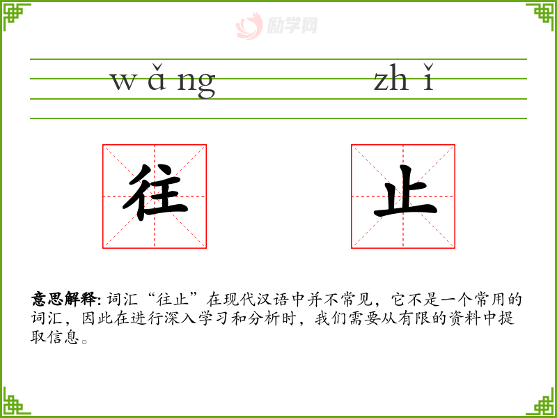 在日常生活中,我们很少会用到“往止”这个词汇。它更多出现在学习和研究古代文献的过程中。