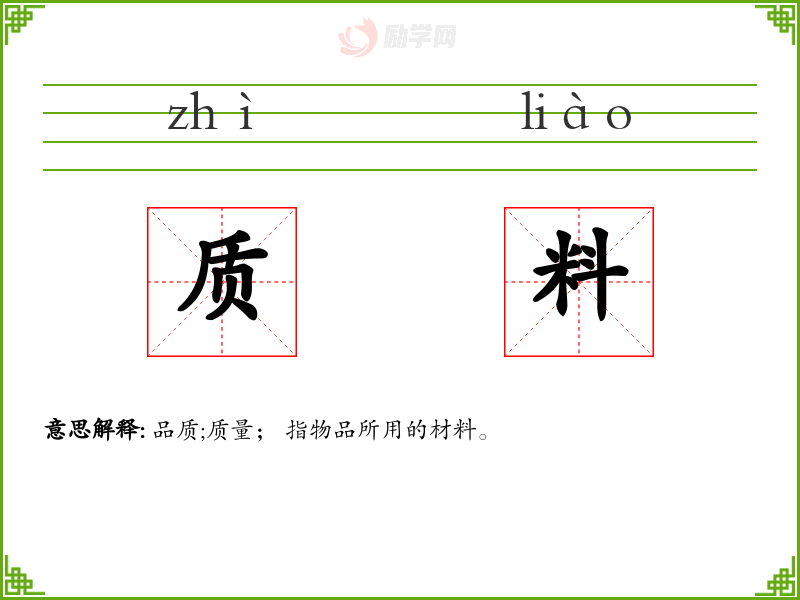 质料的拼音是:zhì liào