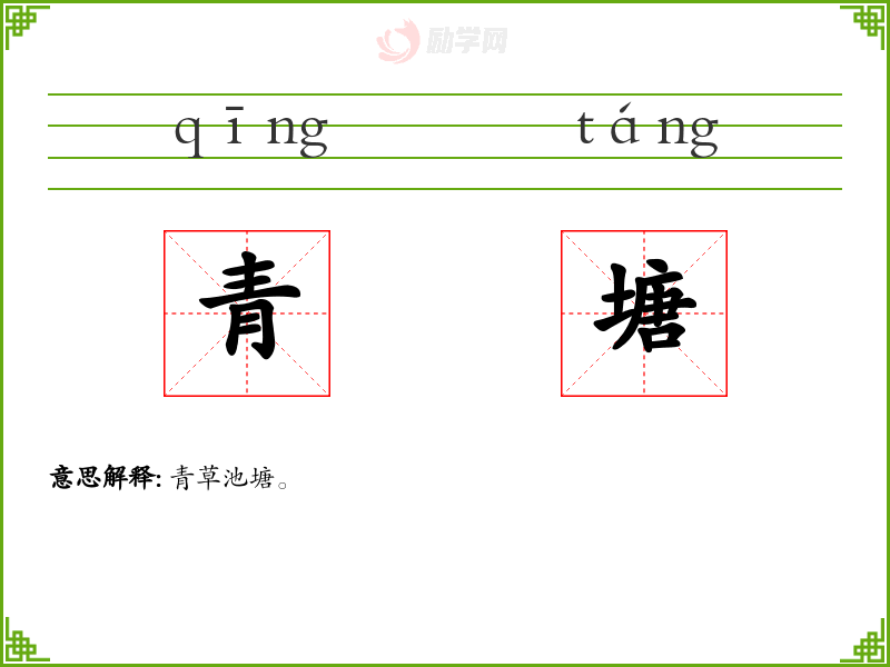 青塘的意思是:青草池塘。