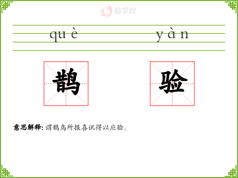 鹊验的意思是:谓鹊鸟所报喜讯得以应验。
