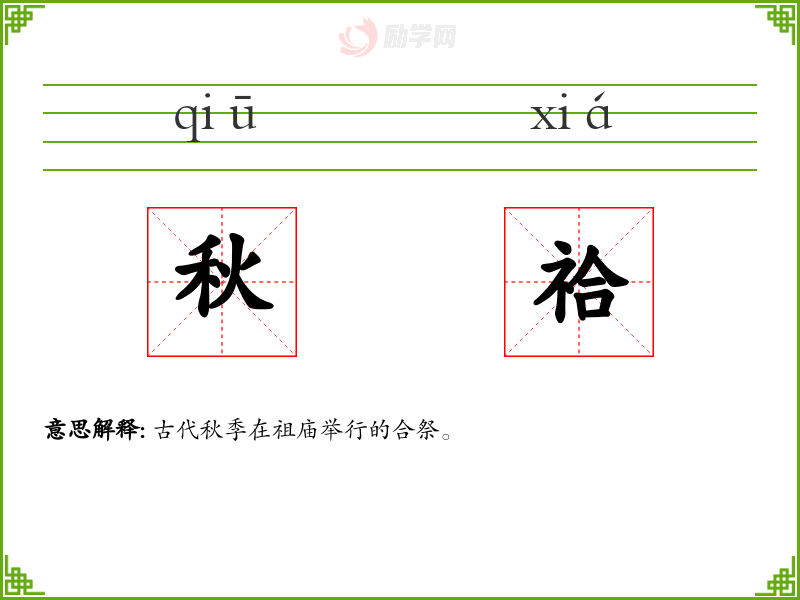 秋祫的意思是:古代秋季在祖庙举行的合祭。