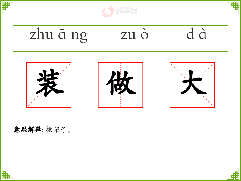装做大的拼音是:zhuāng zuò dà
