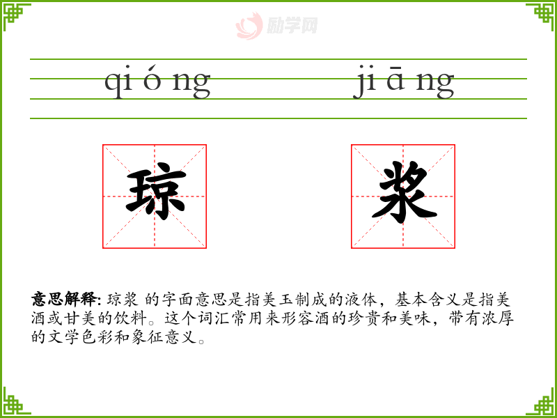1.琼浆的拼音是什么?琼浆怎么读?