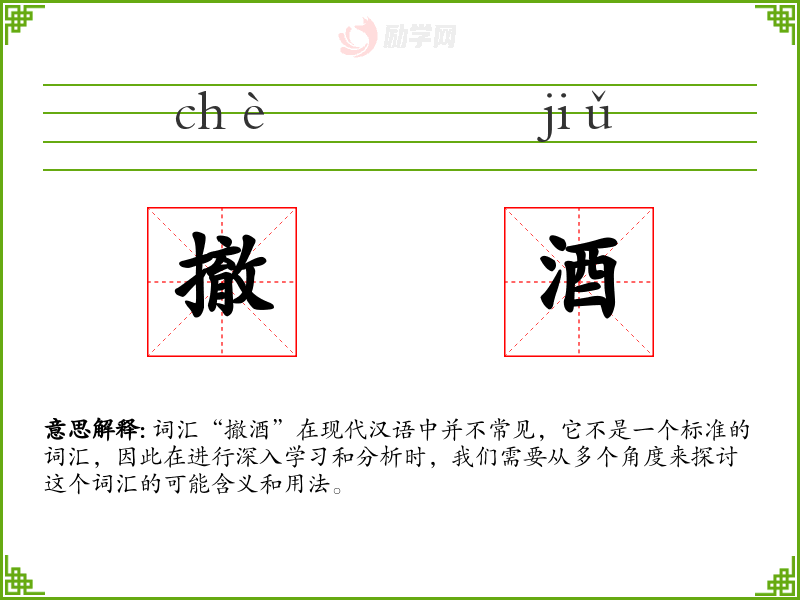 词汇“撤酒”在现代汉语中并不常见,它不是一个标准的词汇,因此在进行深入学*和分析时,我们需要从多个角度来探讨这个词汇的可能含义和用法。
