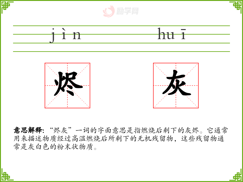 “烬灰”一词的字面意思是指燃烧后剩下的灰烬。它通常用来描述物质经过高温燃烧后所剩下的无机残留物,这些残留物通常是灰白色的粉末状物质。
