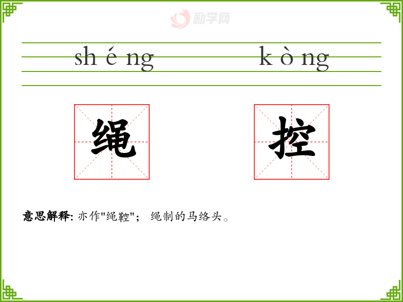 绳控的意思是:亦作"绳鞚"; 绳制的马络头。