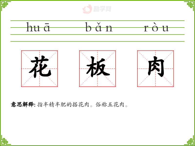 1.花板肉的拼音是什么?花板肉怎么读?
