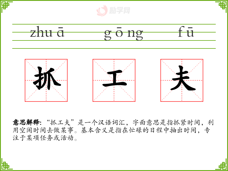 1.抓工夫的拼音是什么?抓工夫怎么读?