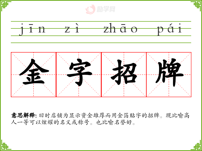 《说文》-金,五色金也。黄为之长。久埋不生衣,百錬不轻,从革不违,西方之行,生于土,从土左右。注:象金在土中形。 《尔雅·释地》-西南之美者,有华山之金石焉。 《易·妒》-系于金柅。 《书·禹贡》。注:“铜三色也。”-惟金三品。 唐·李朝威《柳毅传》-项掣金锁。