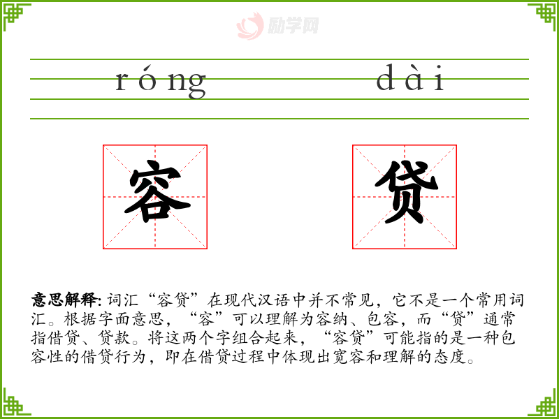 “容贷”这个词在古代文献中可能有所出现,但在现代汉语中并不常见,因此其词源和演变不甚明确。