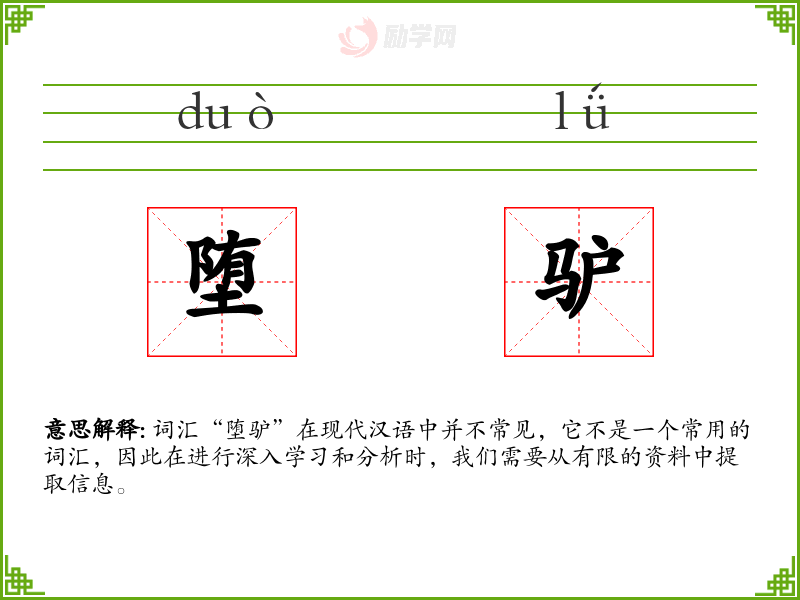 词汇“堕驴”在现代汉语中并不常见,它不是一个常用的词汇,因此在进行深入学习和分析时,我们需要从有限的资料中提取信息。