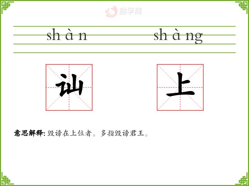 讪上的意思是:毁谤在上位者。多指毁谤君王。