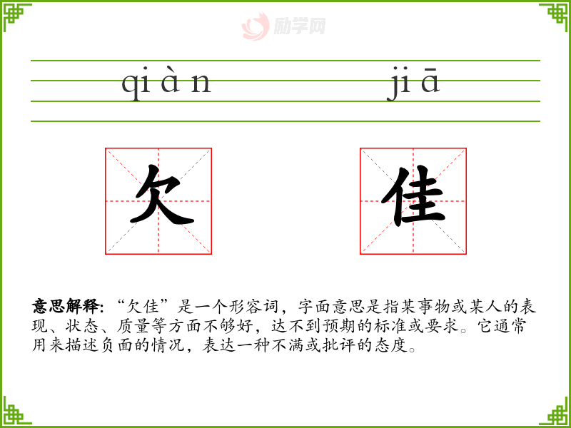 1.欠佳的拼音是什么?欠佳怎么读?