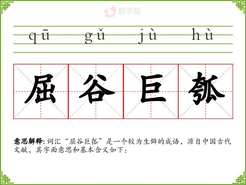 词汇“屈谷巨瓠”是一个较为生僻的成语,源自**古代文献,其字面意思和基本含义如下: