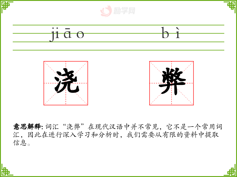 词汇“浇弊”在现代汉语中并不常见,它不是一个常用词汇,因此在进行深入学*和分析时,我们需要从有限的资料中提取信息。