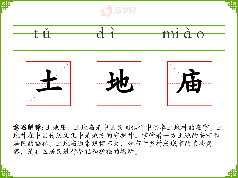 - 细微差别:这些词汇都指供奉土地神的庙宇,但在不同地区或方言中可能有所区别。