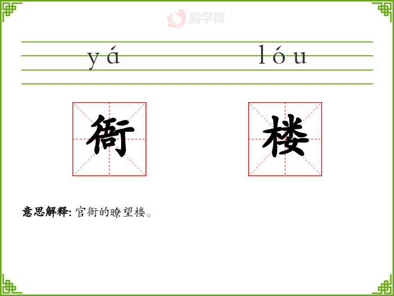 《说文》-楼,重屋也。 《古诗十九首》-西北有高楼,上与浮云齐。 杜牧《阿房宫赋》-五步一楼,十步一阁。