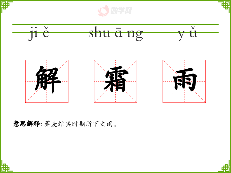 1.解霜雨的拼音是什么?解霜雨怎么读?