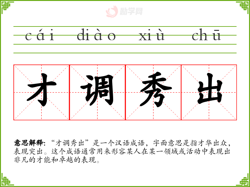 1.才调秀出的拼音是什么?才调秀出怎么读?