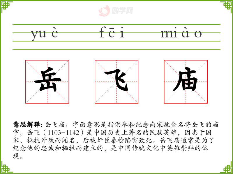 1.岳飞庙的拼音是什么?岳飞庙怎么读?
