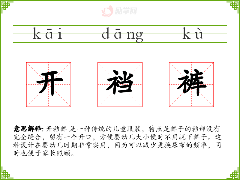 1.开裆裤的拼音是什么?开裆裤怎么读?