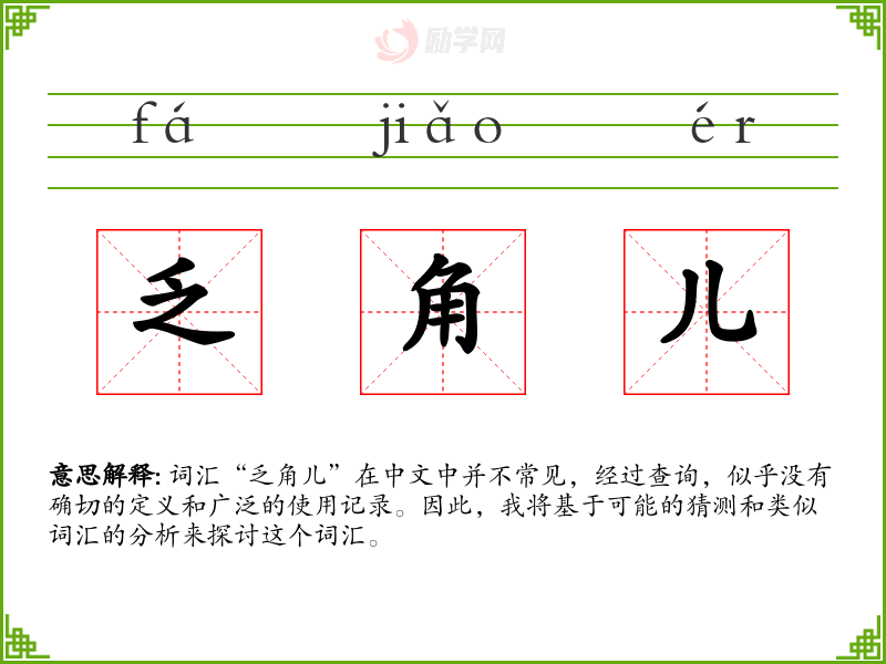 由于“乏角儿”不是一个标准词汇,我们可以尝试从字面意思来解释: