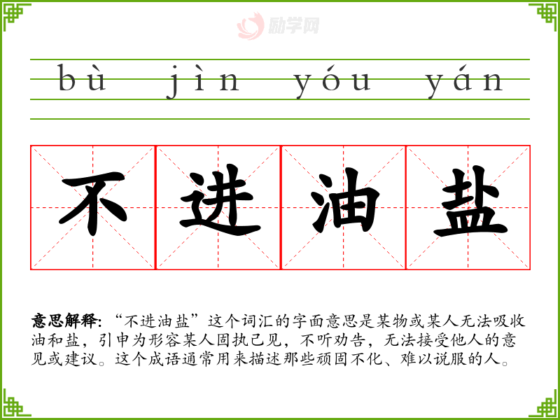1.不进油盐的拼音是什么?不进油盐怎么读?