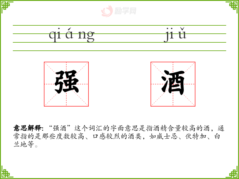 “强酒”这个词汇不仅描述了一种物质的特性,还承载了文化、情感和社会的多重意义。在语言学习和表达中,理解这样的词汇可以帮助我们更准确地传达信息,并丰富我们的表达方式。
