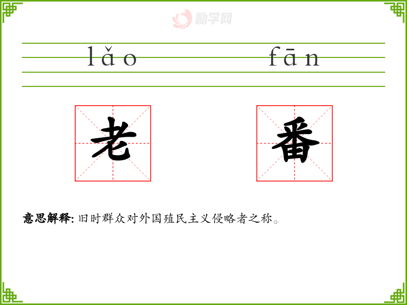 老番的意思是:旧时群众对外国殖民主义侵略者之称。